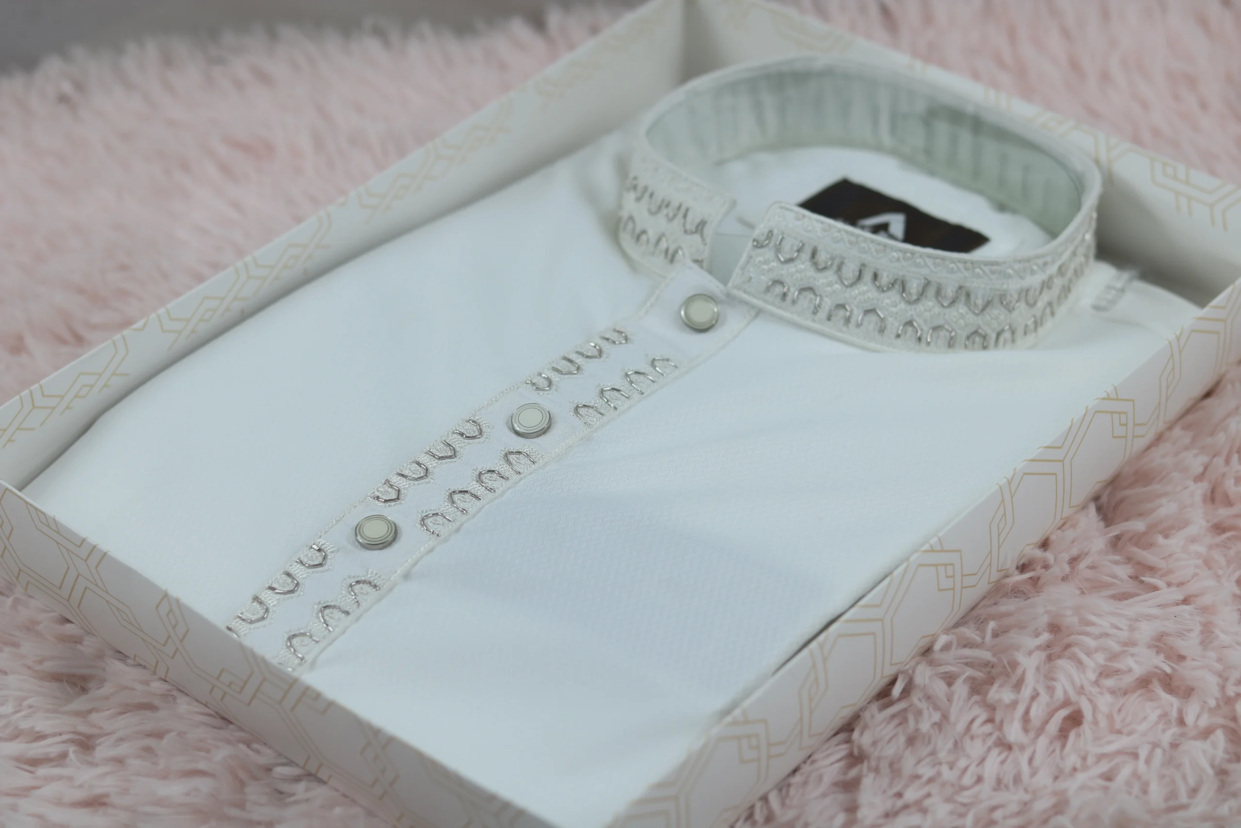 • মিনিমালিস্ট ডিটেইল: এতে রয়েছে সূক্ষ্ম ম্যান্ডারিন কলার এবং ক্লিন প্লাকেট ডিজাইন, যা একটি আধুনিক লুক বজায় রাখে।