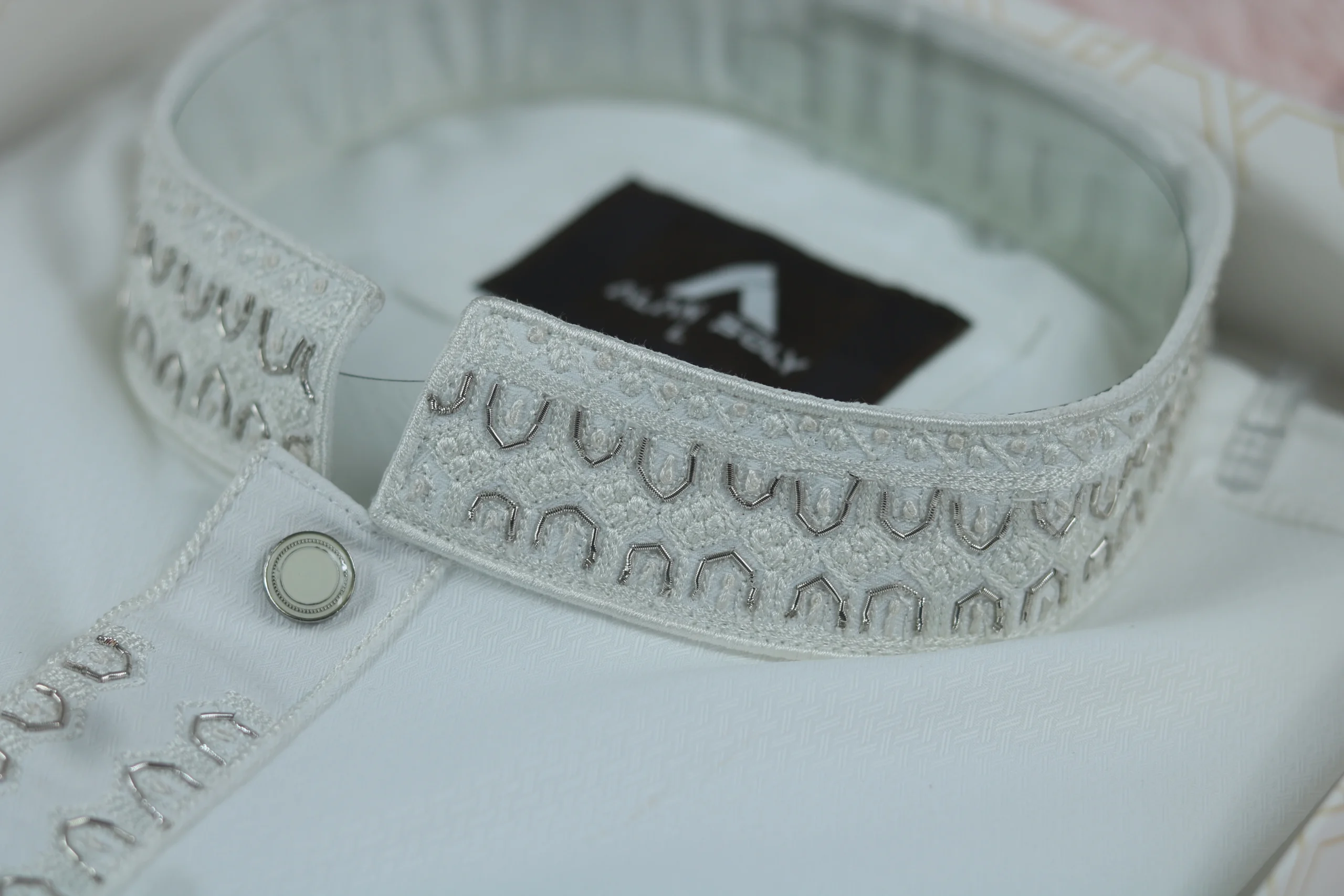 আপনার এথনিক ওয়ার্ডরোবকে আধুনিক মিনিমালিজমের ছোঁয়ায় নতুন করে সাজিয়ে তুলুন।White রঙের এই অ্যালেন সলি পাঞ্জাবিটি সেইসব পুরুষদের জন্য ডিজাইন করা হয়েছে যারা মার্জিত আভিজাত্য এবং সমসাময়িক ফিটিং পছন্দ করেন।