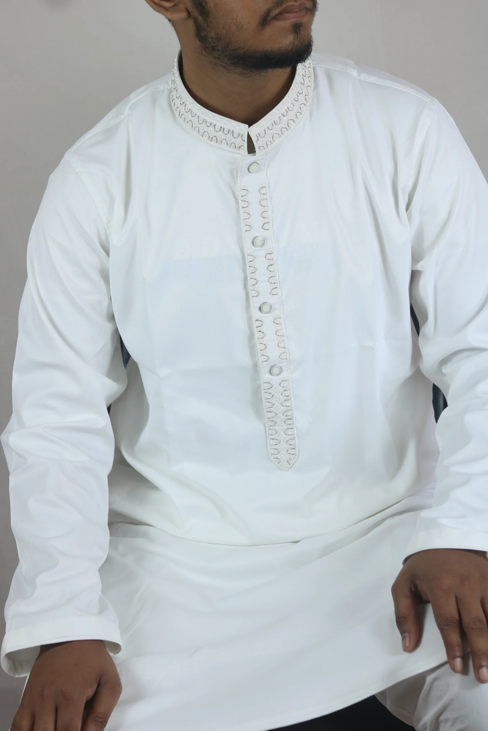• প্রিমিয়াম ফেব্রিক: উচ্চমানের মিশ্রিত কাপড়ে তৈরি, যা নিশ্চিত করে আরাম ও স্থায়িত্ব। সকালের আচার-অনুষ্ঠান থেকে রাতের উৎসব—সবখানেই আপনি থাকবেন ফুরফুরে।