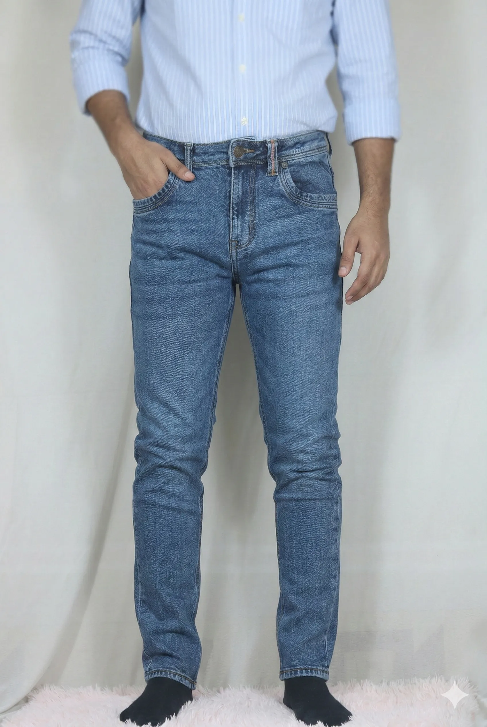 আমাদের নতুন ‘ক্লাসিক স্লিম-স্ট্রেট জিন্স’ এর মাধ্যমে শৈলী, আরাম এবং কারিগরি কারুকার্যের নিখুঁত সংমিশ্রণ আবিষ্কার করুন। আধুনিক পুরুষের জন্য তৈরি, এই জিন্স শুধুমাত্র একটি দৈনন্দিন পোশাক নয়; এটি আপনার রুচিশীল ওয়ার্ডরোবের জন্য একটি স্টেটমেন্ট পিস।