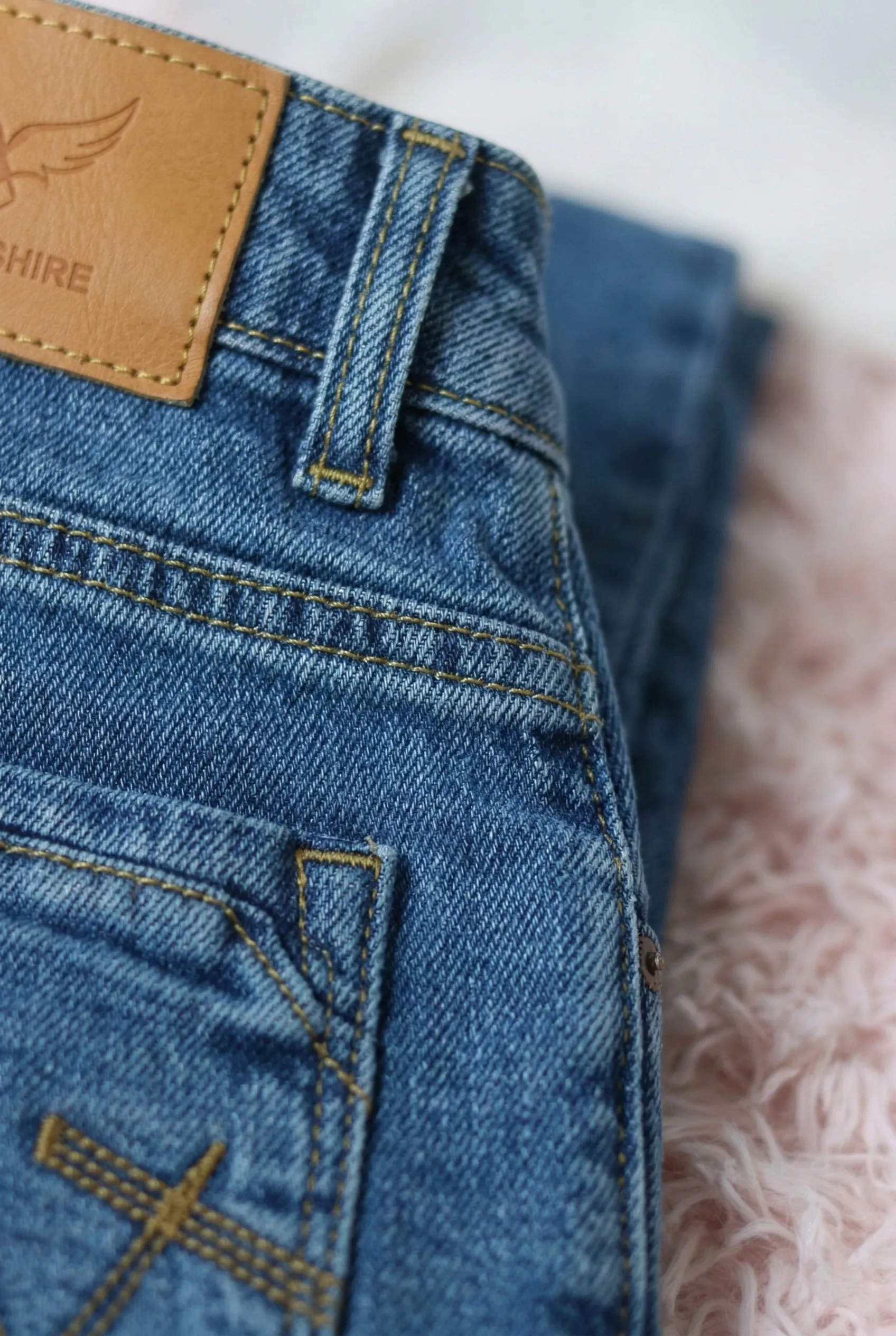 • স্বাক্ষরযুক্ত ডবল-এক্স ব্যাক পকেট: আমরা একটি পরিপূরক ট্যান থ্রেডে একটি জটিল, ডবল-এক্স এমব্রয়ডারির সাথে স্ট্যান্ডার্ড স্টিচিং প্রতিস্থাপন করেছি, একটি অনন্য, কারিগরি উপাদান যোগ করে যা এই জিন্সকে আলাদা করে।